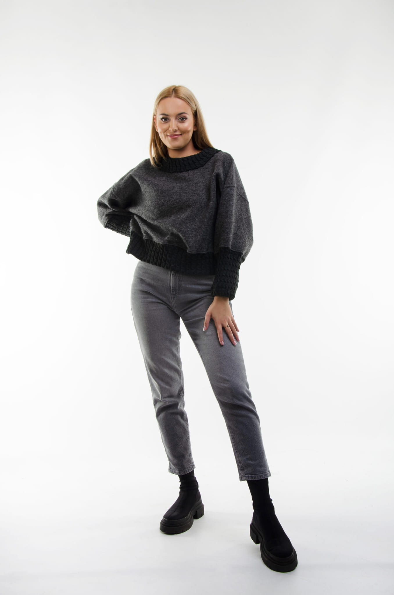 Klasyczna Grafitowa Bluza PALERMO z Grafitowym Warkoczem