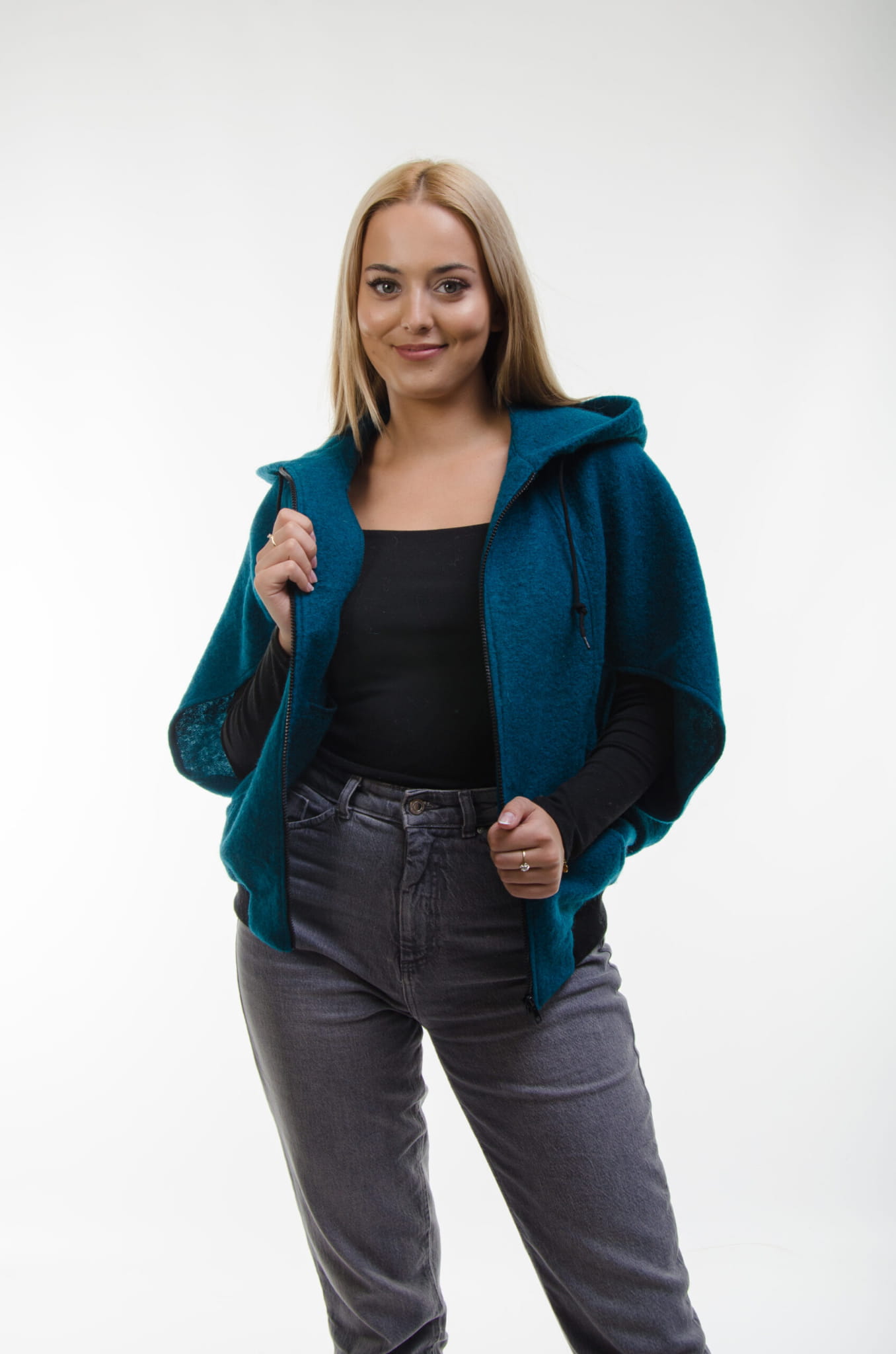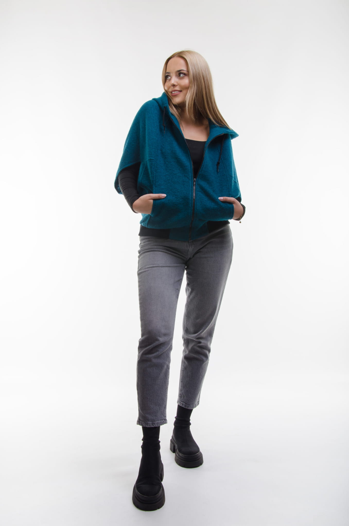 Warstwowa stylizacja: Wykorzystaj bluzę jako dodatkową warstwę na cieplejszy sweter czy koszulę, aby uzyskać modny, warstwowy wygląd. Idealne na chłodniejsze dni, kiedy potrzebujesz dodatkowego ciepła i stylowego akcentu.