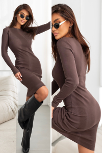 Czekoladowa elastyczna sukienka w prążek NOLIA