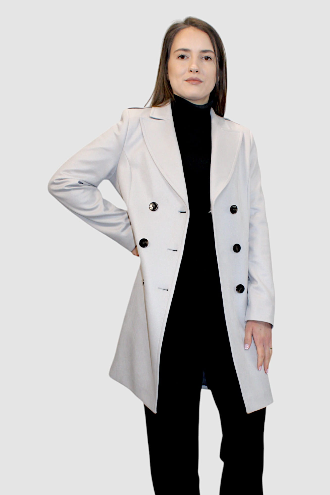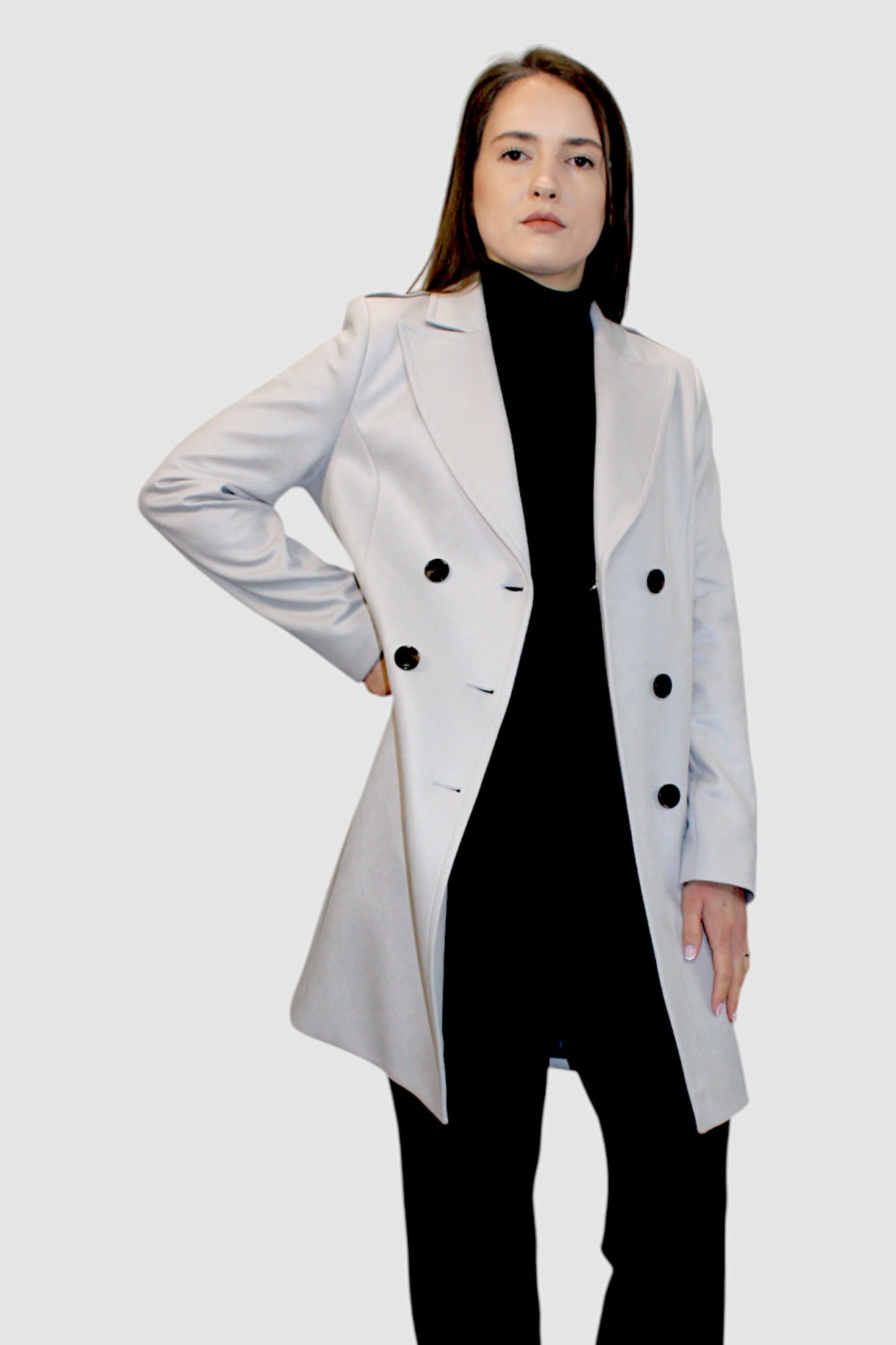 Płaszcz wiosenny PERLA to esencja szyku i klasy, która doskonale uzupełni Twoją garderobę. Jego dwurzędowy fason w połączeniu z wykładanym kołnierzem nadaje mu eleganckiego charakteru, a ozdobne pagony na ramionach dodają subtelnej nuty stylu militarnych inspiracji.