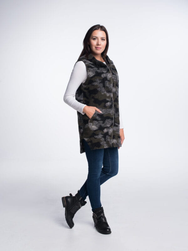 - Ta lekka kamizelka wełniana z kapturem to propozycja dla kobiet ceniących świadome wybory modowe – naturalne materiały, uniwersalny krój i oryginalny styl.