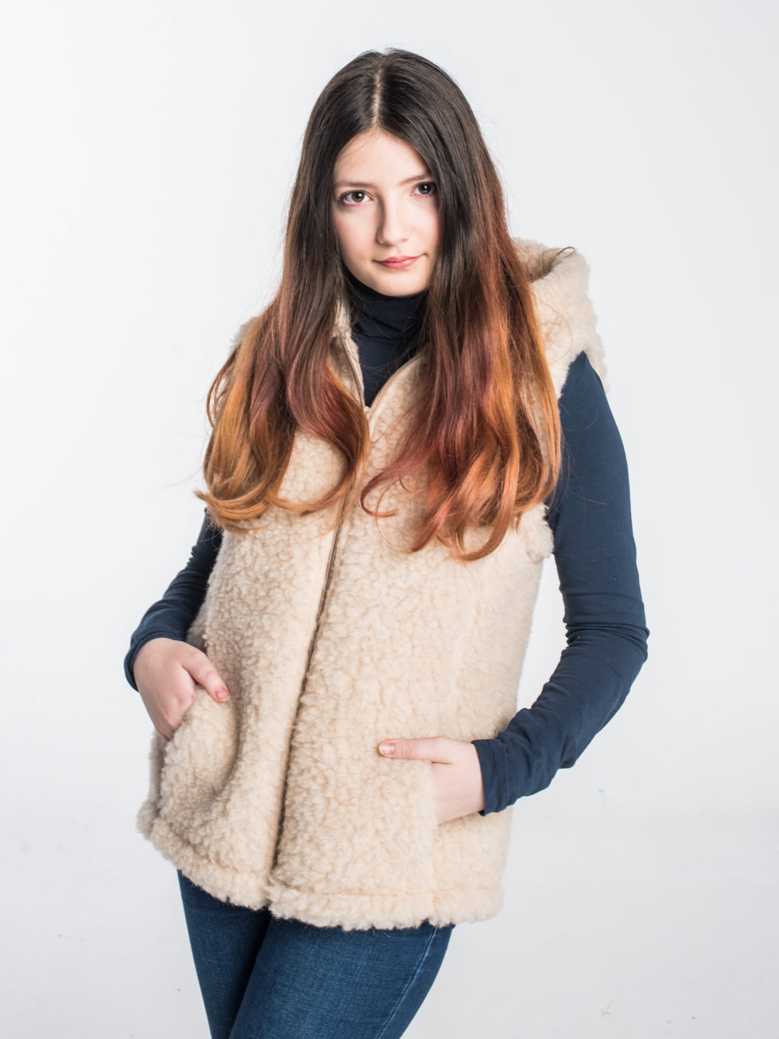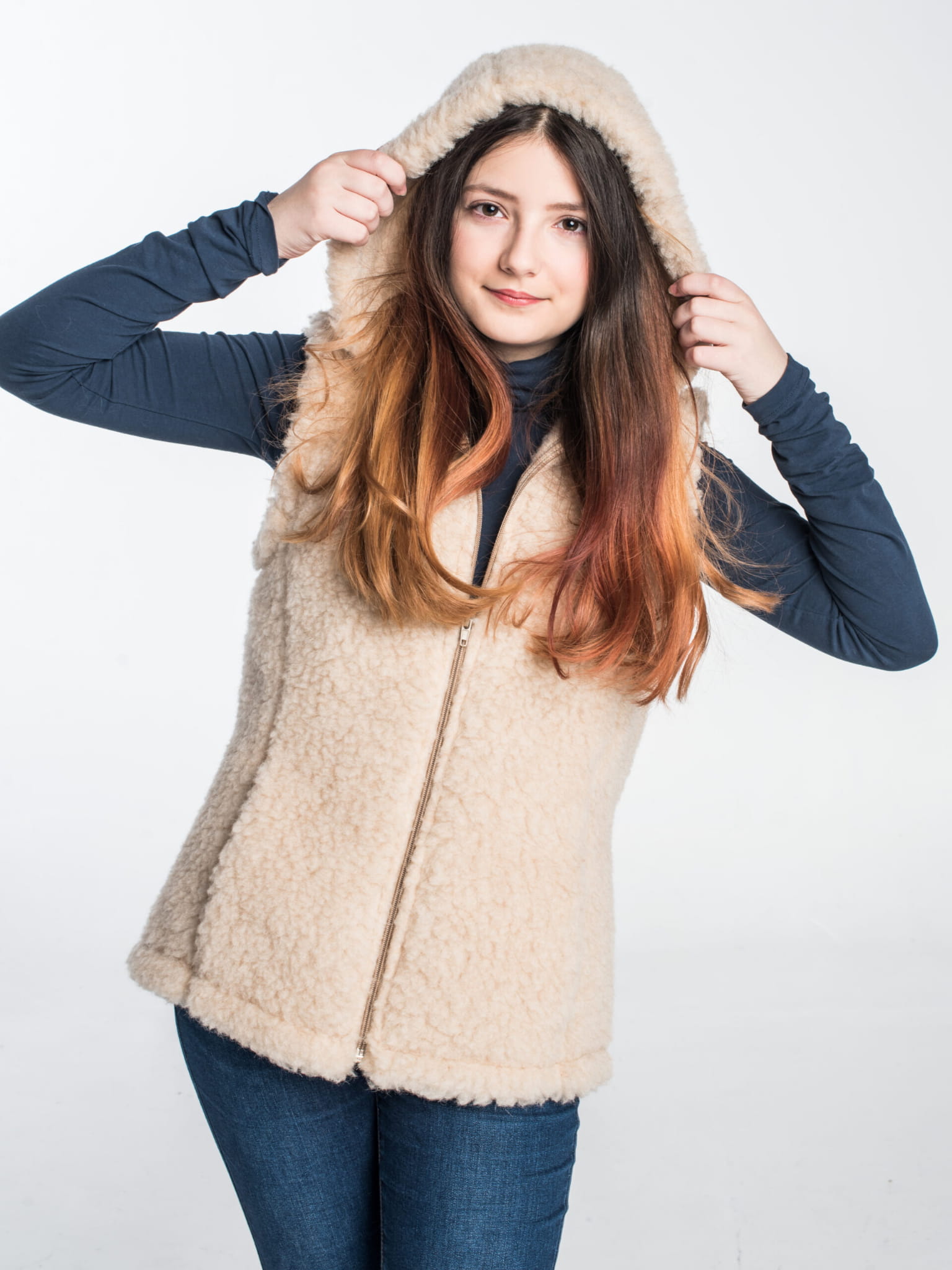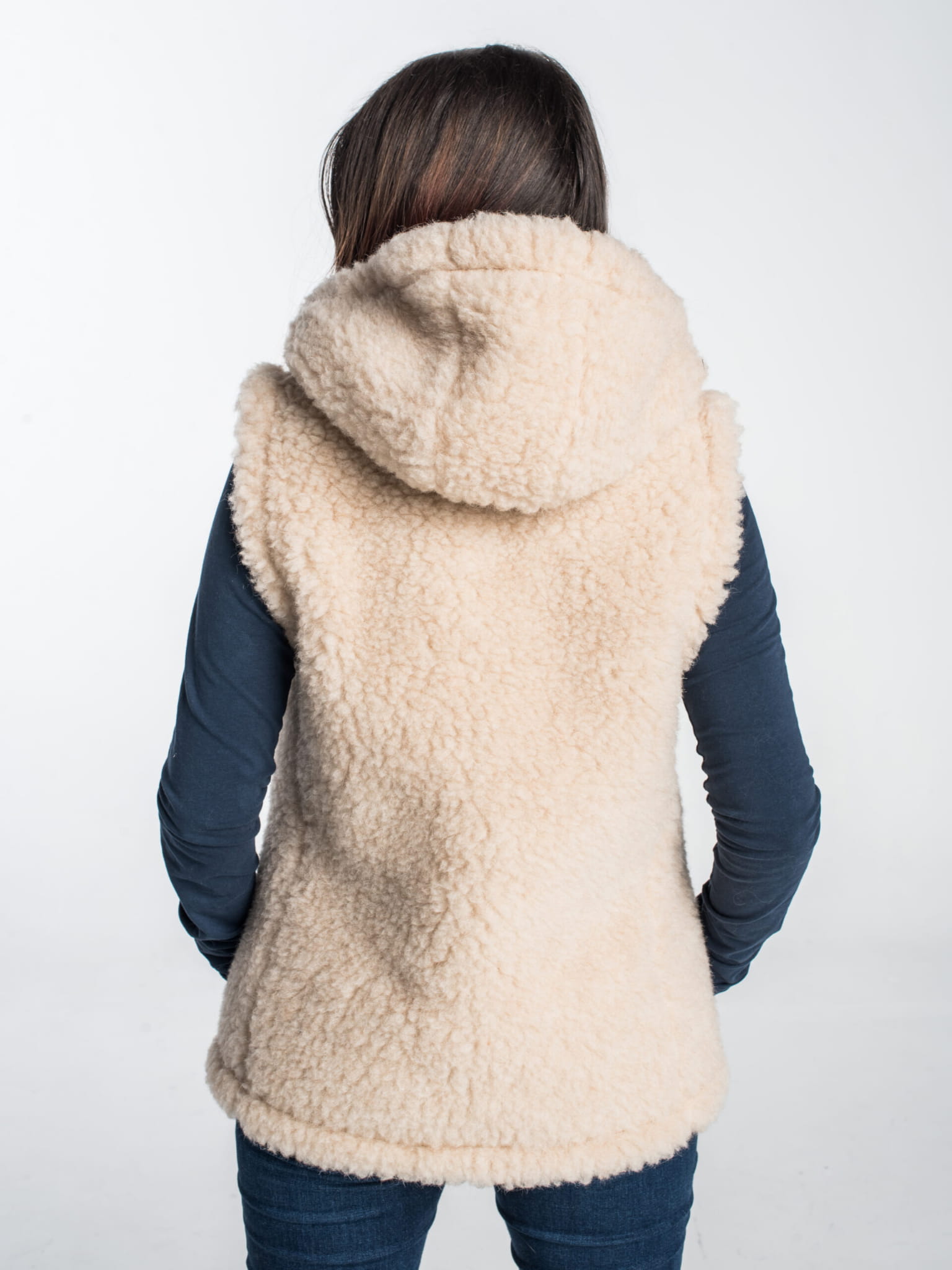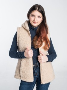 Kamizelka Merynos z kapturem beżowa