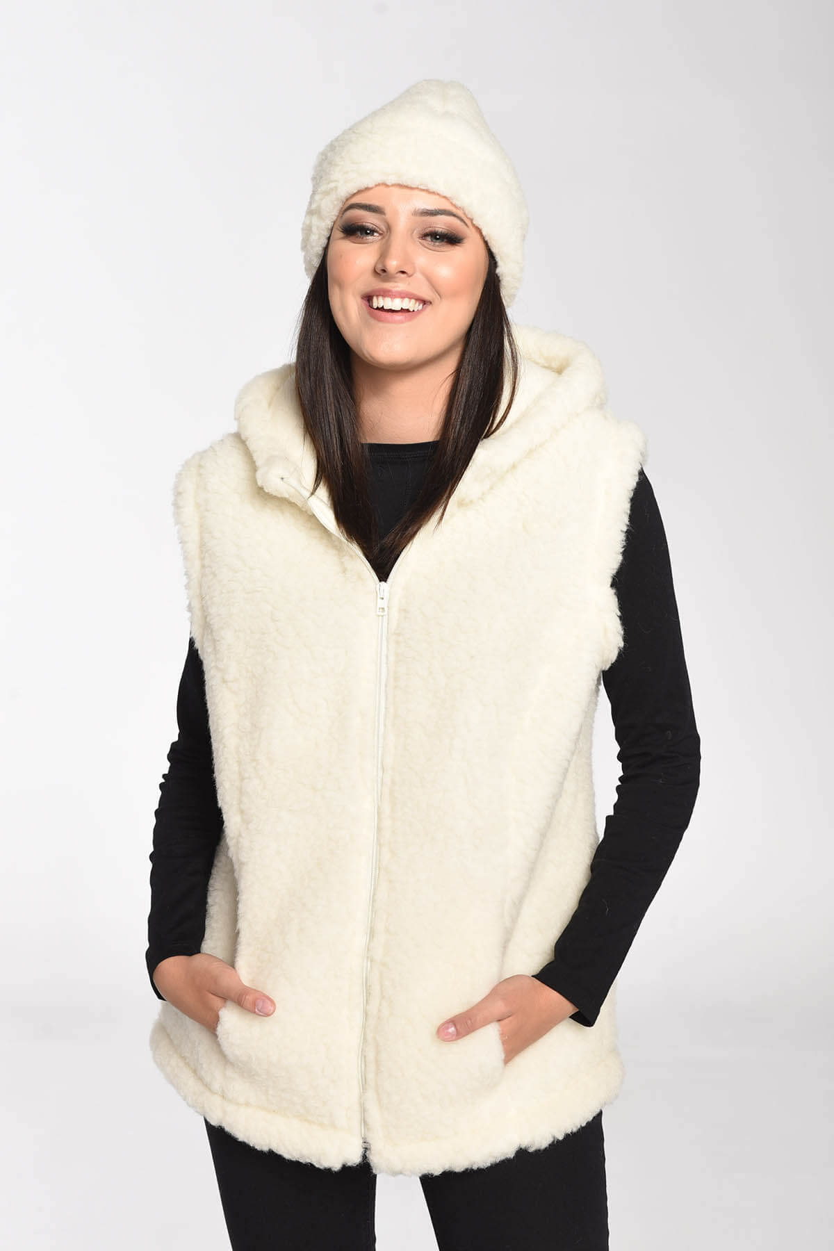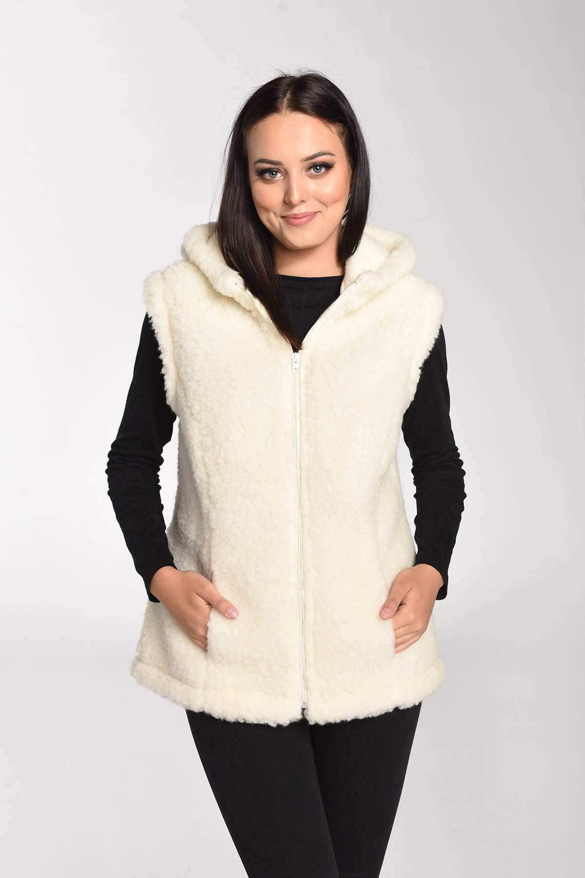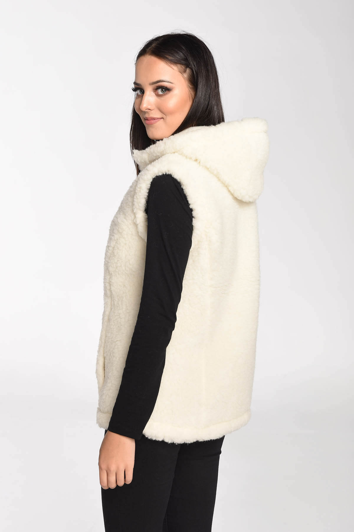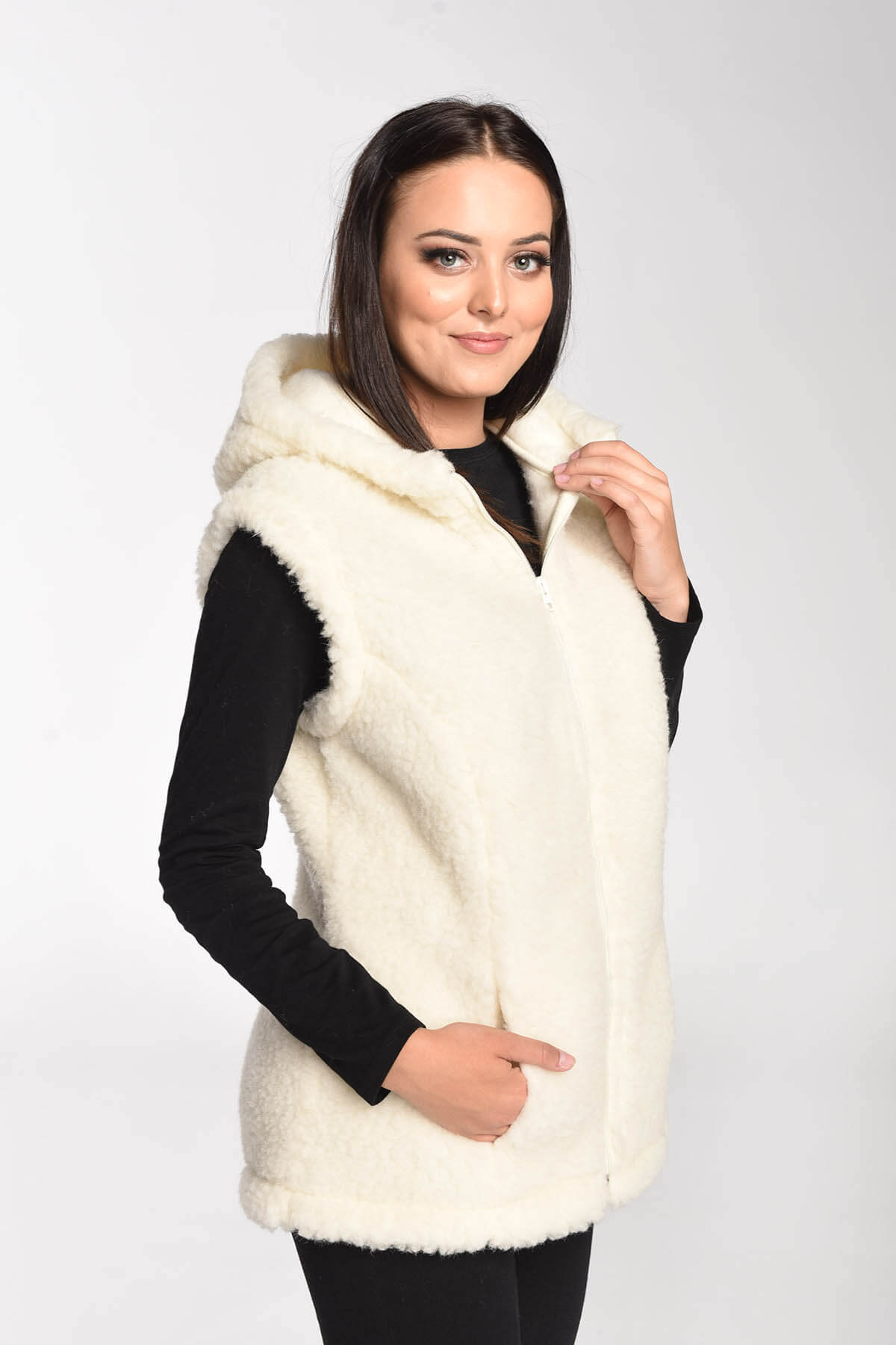 Kamizelka Merynos z kapturem kremowa