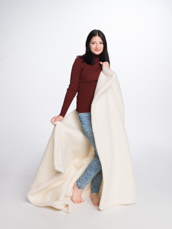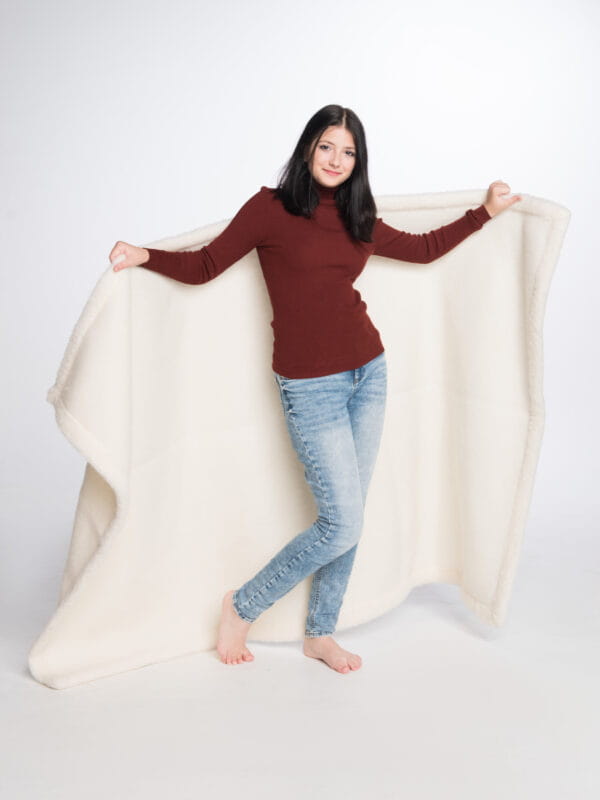 - Całoroczny komfort – koc z wełny doskonale sprawdza się zarówno latem, jak i zimą – naturalnie reguluje temperaturę ciała, zapewniając przyjemne ciepło bez przegrzewania.