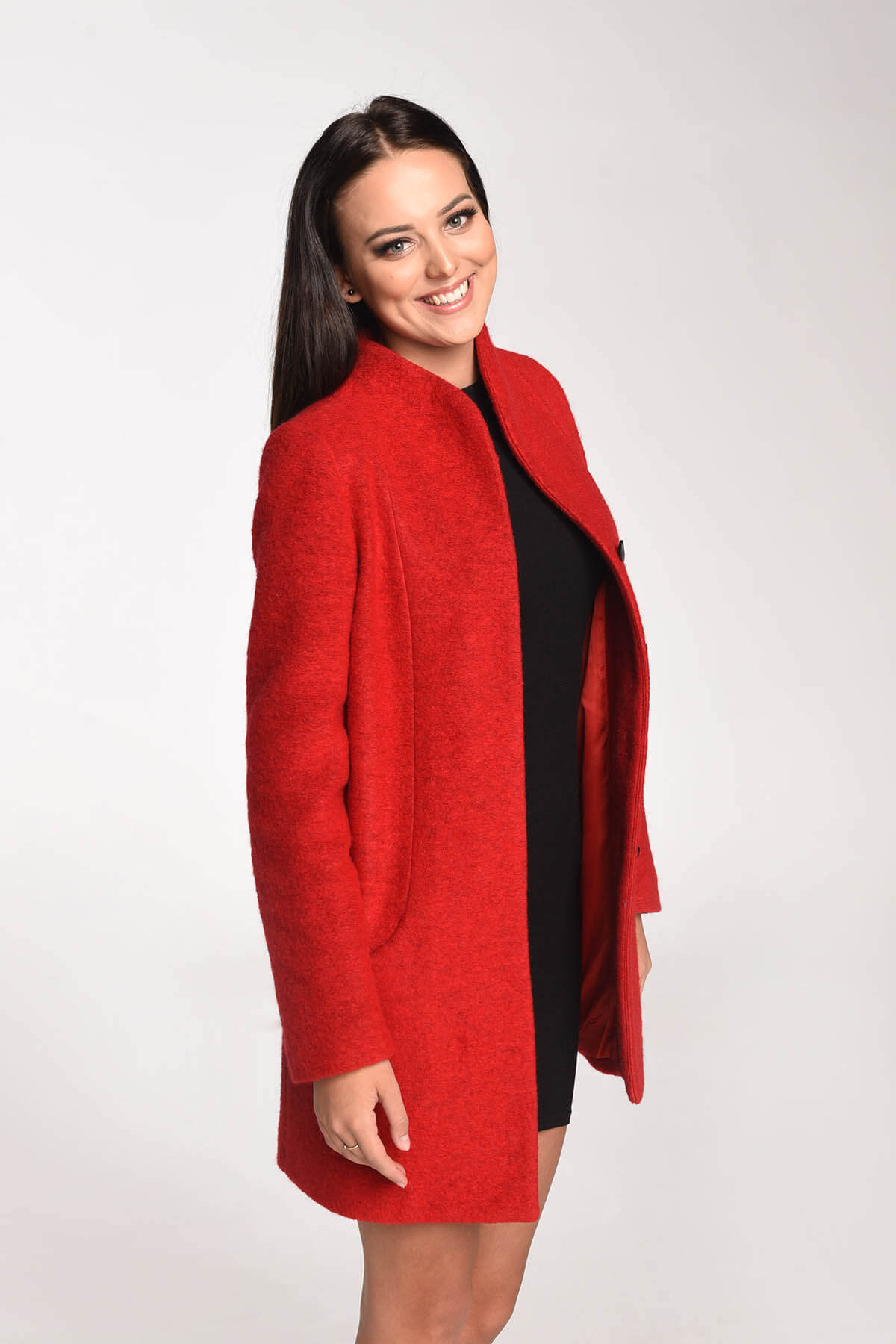 Elegancka, prosta kurtka w kolorze soczystej czerwieni. Z kieszeniami i podszewką