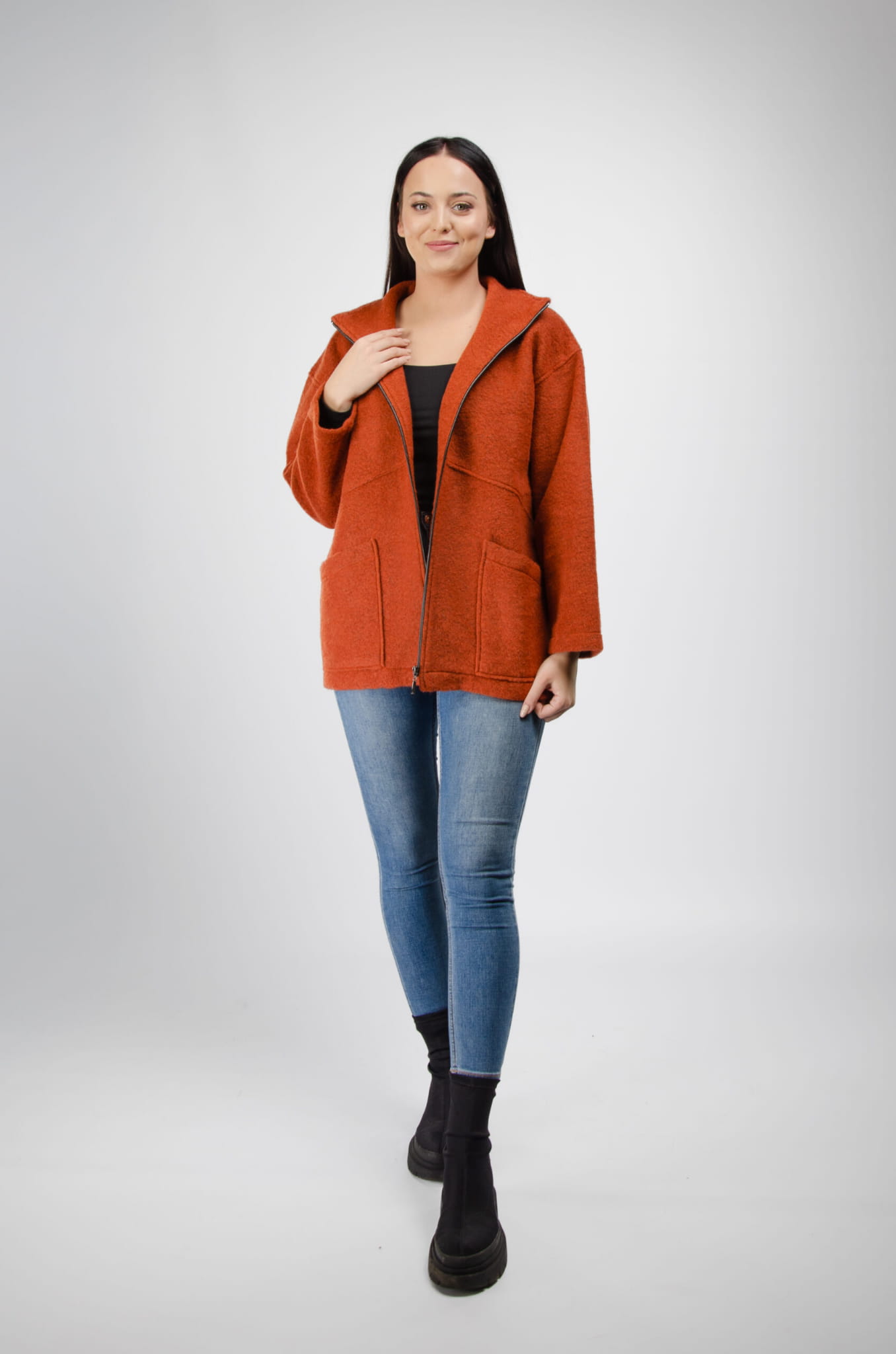- Kurtka z wełny parzonej wyróżnia się na tle innych materiałów dzięki swoim naturalnym właściwościom – doskonale izoluje ciepło, jest lekka, oddychająca, odprowadza wilgoć i nie gniecie się, co zapewnia komfort, trwałość oraz elegancki wygląd nawet przy intensywnym użytkowaniu.