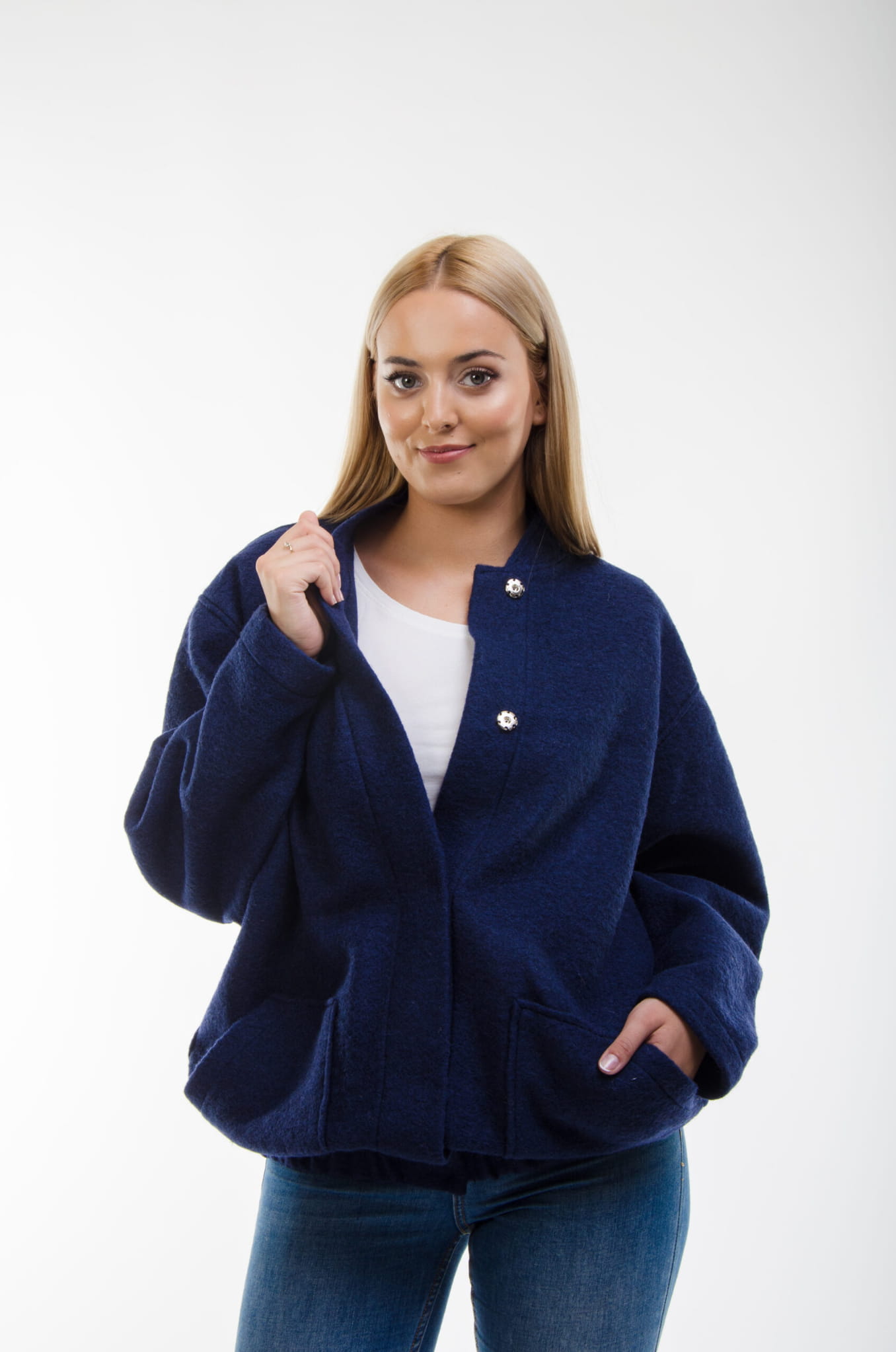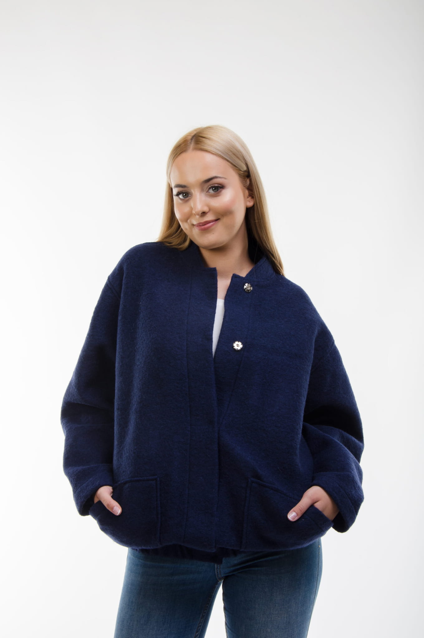 Oversizowa granatowa Bomberka z Wełny – Komfort i Styl na Co Dzień
