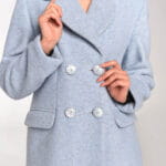 - Zapięcie: dwurzędowe, na dopasowane kolorystycznie guziki – ten rodzaj zapięcia podkreśla elegancję i nadaje sylwetce smukłości.