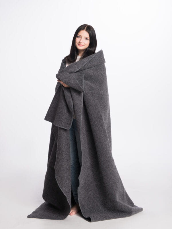 Minimalistyczny pled z 100% wełny igłowanej – naturalne ciepło, które otula z troską.