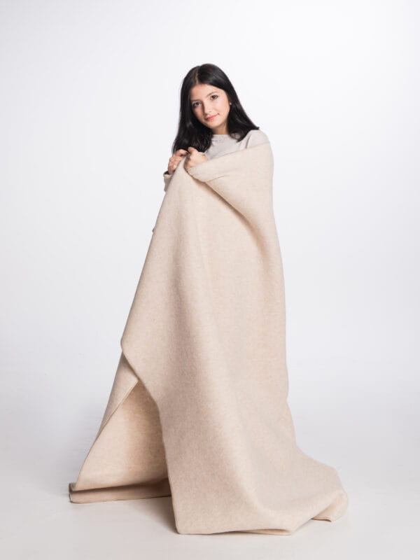 - Całoroczny komfort – koc z wełny owczej doskonale sprawdza się zarówno latem, jak i zimą – naturalnie reguluje temperaturę ciała, zapewniając przyjemne ciepło bez przegrzewania.
