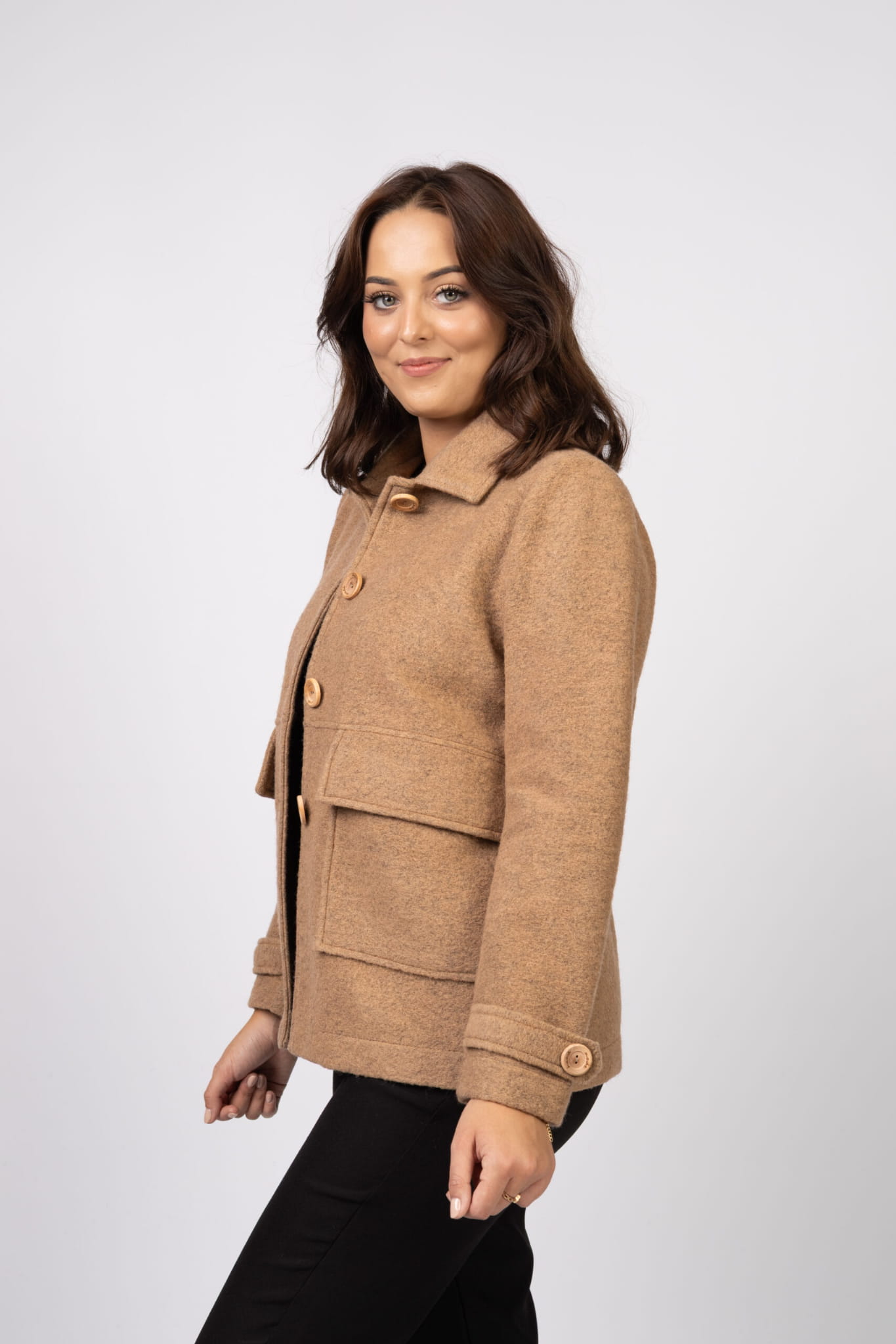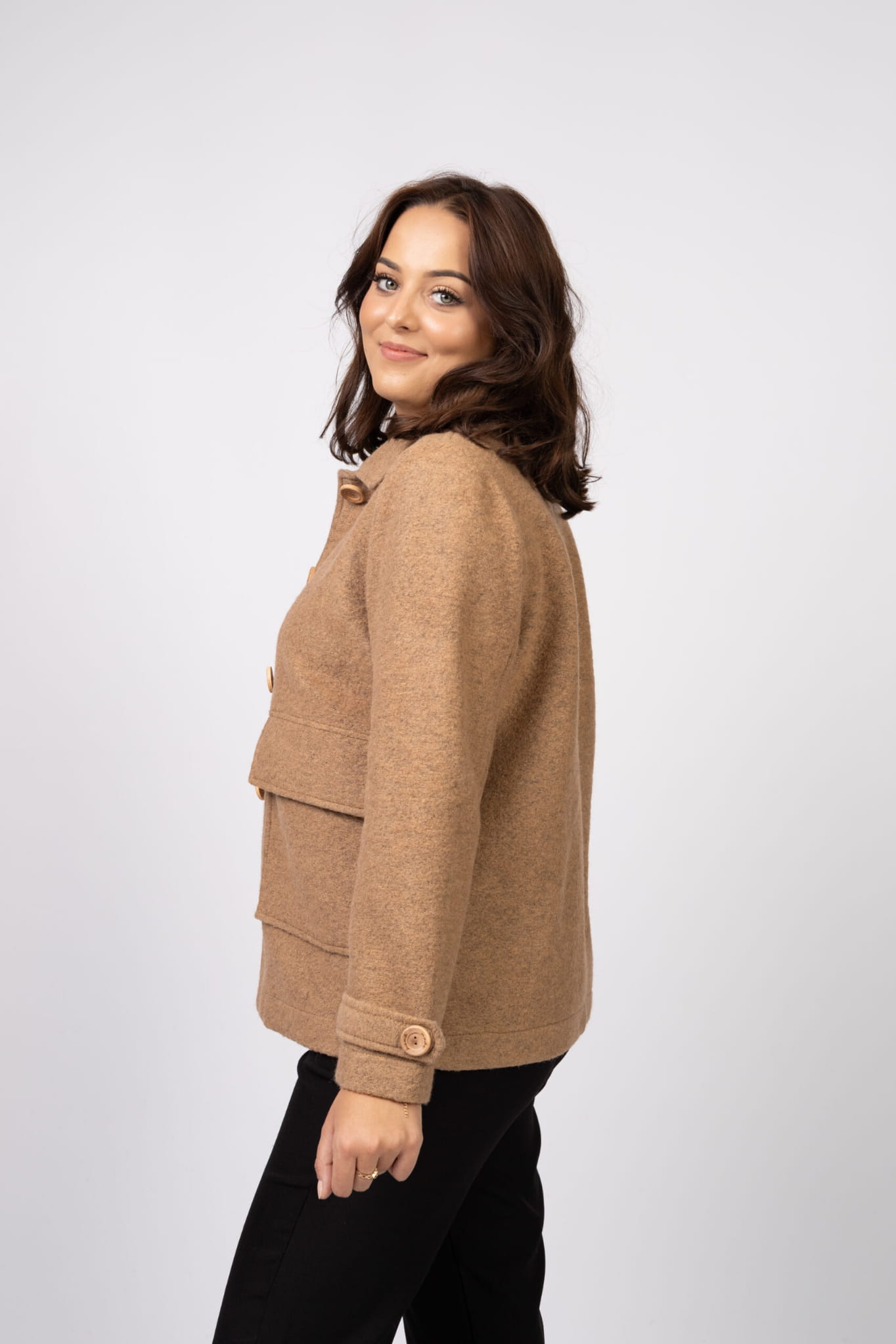 Wełniana kurtka damska Porto – 100% wełna w kolorze camel